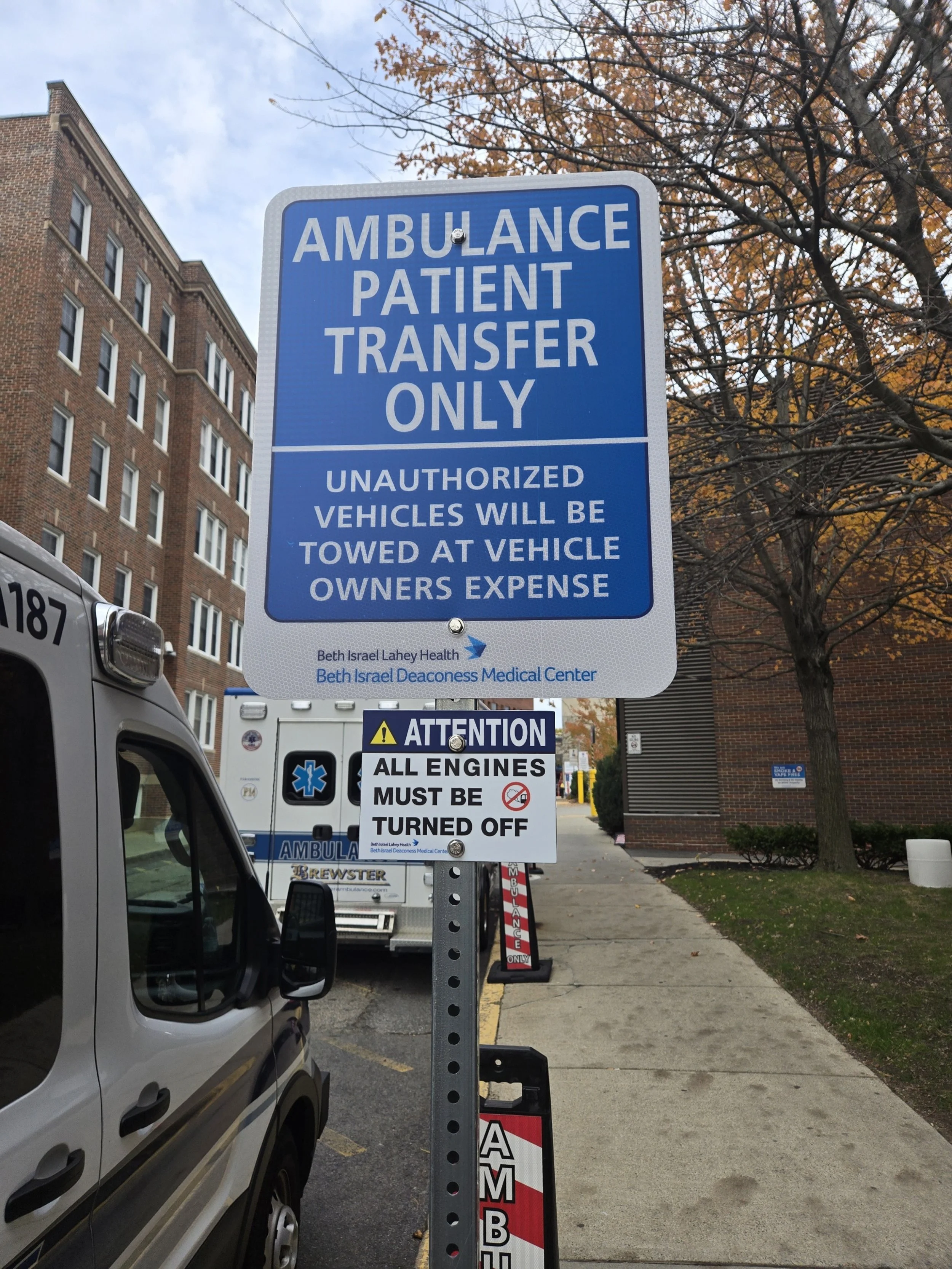 The Red Signs run from Crossover Street to the upper end of Autumn Street at Longwood Ave. These signs read, “ALS Ambulance Staging Area Only. Unauthorized vehicles will be towed at the vehicle owner’s expense.” BIDMC Public Safety understands that our ALS Ambulance crews are instructed by their employers, to stage at certain hospitals. In an effort to accommodate those teams, while keeping our patients and staff safe, we have installed these signs at that end of Autumn Street away from our main buildings. They feel that these changes in signage will better accommodate their ambulance colleagues, while maintaining a safe atmosphere for their patients and staff.